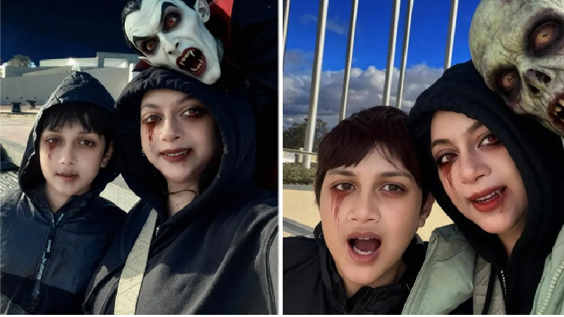 সামাজিক যোগাযোগমাধ্যম ইনস্টাগ্রামে ছেলের সঙ্গে একটি ছবি শেয়ার করেছেন তিনি। সেখানে দেখা যায়, শাবনূর ডাইনির সাজে সেজেছেন, আর তার ছেলে আইজান ভূতের রূপে। চোখের এক পাশে নেমে আসা লালচে রঙ যেন রক্তের প্রবাহের মতো, যা সাজটিকে দিয়েছে এক ভয়াবহ বাস্তবতা।