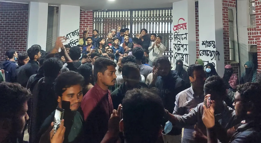শিক্ষার্থীরা প্রথমে রেজিস্ট্রার ভবনের সামনে জড়ো হয়ে বিক্ষোভ শুরু করেন। পরে রাত ১০টার দিকে প্রশাসনিক ভবনে তালা ঝুলিয়ে তারা উপাচার্যের বাসভবনের সামনে বিক্ষোভ করেন। রাত ১১টার দিকে কোষাধ্যক্ষ অধ্যাপক ড. ইসমাইল হোসেন এবং প্রক্টর অধ্যাপক মোখলেসুর রহমান এসে আশ্বাস দেন শুক্রবারই তপশিল ঘোষণা করা হবে। তবে তাতেও রাজি হননি বিক্ষুব্ধ শিক্ষার্থীরা।