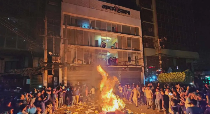 রাজধানীর কারওয়ান বাজারে অবস্থিত প্রথম আলোর প্রধান কার্যালয় ও ফার্মগেটে অবস্থিত ডেইলি স্টার ভবনে হামলা চালিয়েছে বিক্ষুব্ধ জনতা।