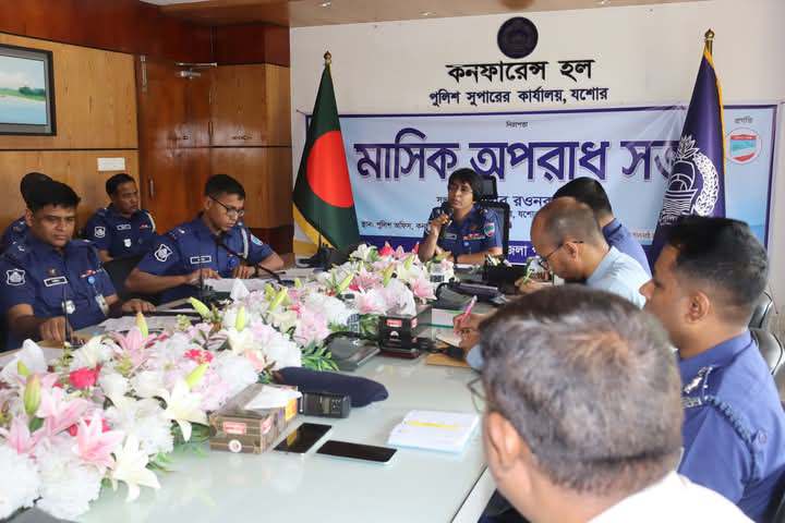 পুলিশ সুপারের কার্যালয়ের কনফারেন্স হলে যশোর পুলিশ সুপার রওনক জাহানের সভাপতিত্বে মাসিক অপরাধ পর্যালোচনা সভা অনুষ্ঠিত হয়। এসময়